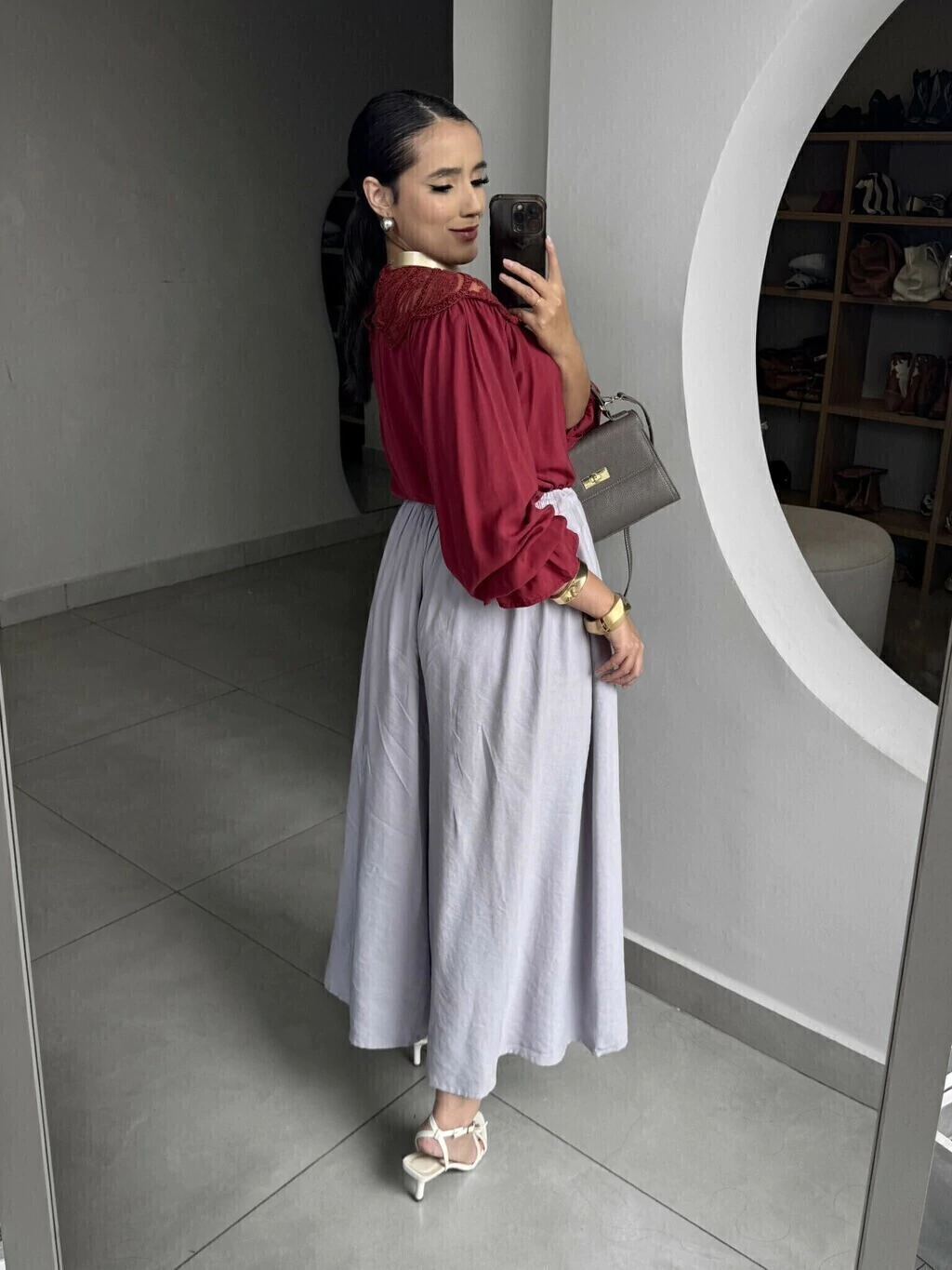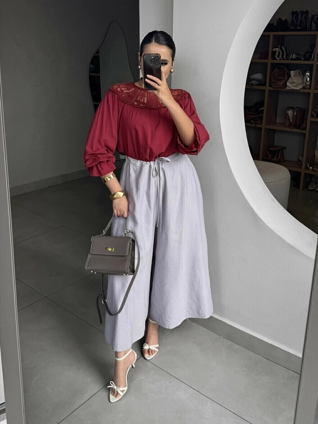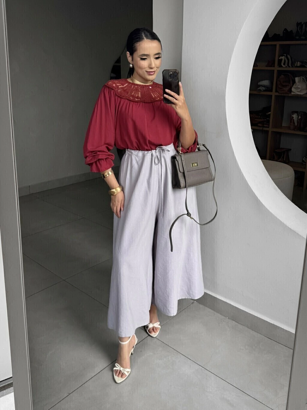A calça mais confortável e versátil que você vai encontrar, perfeita para te acompanhar do trabalho ao café com as amigas. Esta pantacourt, com seu corte amplo, combina um tecido encorpado com fluidez, proporcionando um caimento impecável. Os bolsos faca laterais são funcionais e práticos, enquanto o zíper invisível frontal e a amarração ajustável no cós garantem um ajuste personalizado. O elástico na parte de trás permite que a calça se adapte perfeitamente, vestindo do tamanho 36 ao 46/48. Uma peça essencial para qualquer guarda-roupa.