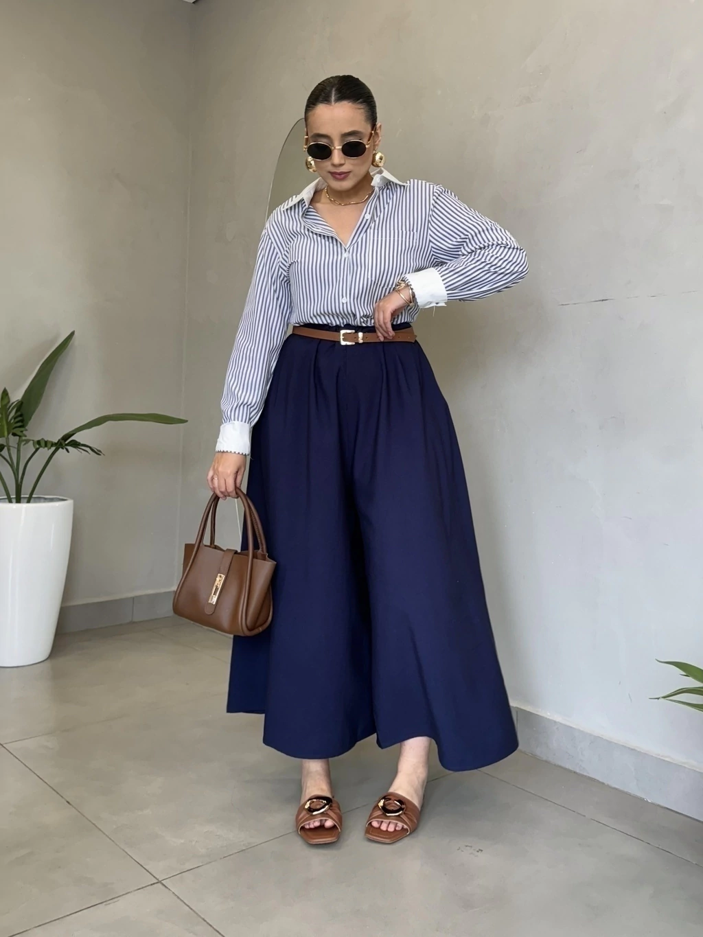 A calça mais confortável e versátil que você vai encontrar, perfeita para te acompanhar do trabalho ao café com as amigas. Esta pantacourt, com seu corte amplo, combina um tecido encorpado com fluidez, proporcionando um caimento impecável. Os bolsos faca laterais são funcionais e práticos, enquanto o zíper invisível frontal e a amarração ajustável no cós garantem um ajuste personalizado. O elástico na parte de trás permite que a calça se adapte perfeitamente, vestindo do tamanho 36 ao 46/48. Uma peça essencial para qualquer guarda-roupa.